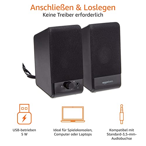 Wenn du eine unkomplizierte Lösung für klaren Sound direkt am Arbeitsplatz suchst, triffst du mit den Amazon Basics USB Computer-Lautsprechern in Schwarz eine stimmige Wahl. Du profitierst von echter Plug-and-Play-Nutzung ohne Setup-Aufwand, einem praktischen Lautstärkeregler und einem Format, das kaum Platz braucht. Der definierte Frequenzgang von 103 Hz – 20 kHz bietet dir gute Verständlichkeit für Sprache und Inhalte am PC oder Laptop – perfekt für Videokonferenzen, E-Learning und konzentriertes Arbeiten mit dezentem Musik-Background.