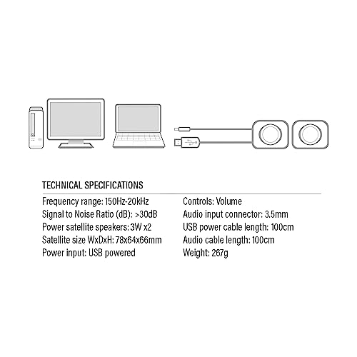 Genießen Sie kraftvollen Klang mit diesen kompakten 2.0 Stereo Lautsprechern für PC und Laptop. Einfach über USB anschließen und sofort loslegen!