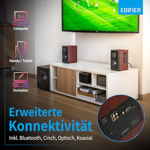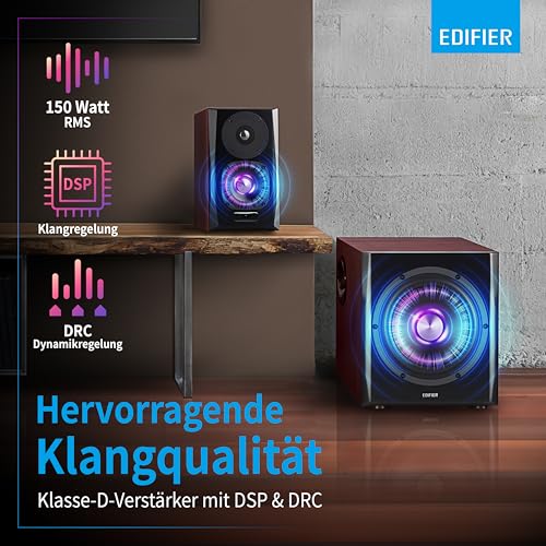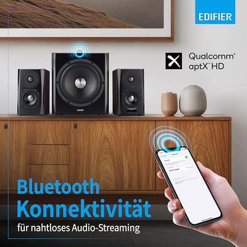 Erlebe mit dem Edifier S350DB ein 2.1 Lautsprecher System, das dir dank Bluetooth 4.0 mit aptX und kraftvollem Subwoofer sofort beeindruckenden Klang für dein Home-Entertainment liefert – ohne komplizierte Einrichtung.