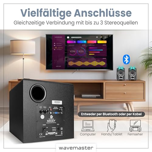 Mit dem folgenden Überblick erhältst Du eine schnelle Einordnung, ob das wavemaster Moody BT 2.1 Lautsprecher System zu Deinen Anforderungen passt.
