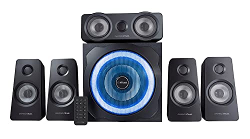 Erlebe mit dem Trust Gaming GXT 658 Tytan 5.1 Lautsprecher-Set packenden Surround-Sound und stimmungsvolle LED-Effekte – für Gaming, Filme und Musik. Der größte Vorteil: Du tauchst dank echtem 5.1-System mit Subwoofer in ein mitreißendes Audioerlebnis ein, das Deinen PC-, Laptop- oder Konsolen-Setup spürbar aufwertet.