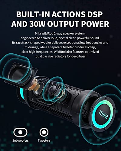 Der MIFA WildRod Bluetooth Lautsprecher für Outdoor bringt dich mit kraftvollem 30W-Sound zuverlässig durch Abenteuer und Partys – dank IP67-Schutz und bis zu 12 Stunden Akkulaufzeit bleibt deine Musik auch draußen robust und ausdauernd.