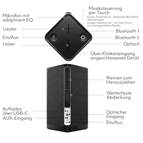 - Tiefe Bässe und mitreißender Sound für Events, Garten, Balkon und Wohnzimmer