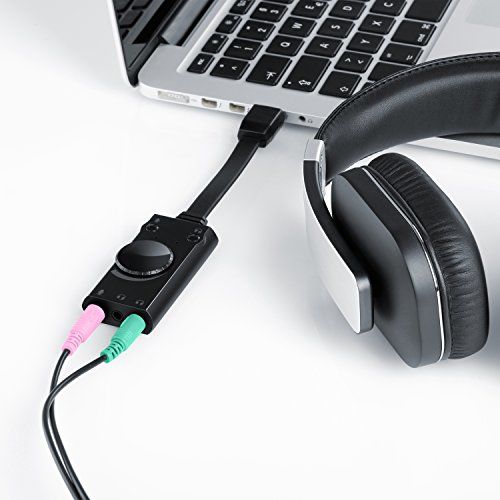 CSL – USB Mini Soundkarte extern – Virtuelles Surround – kompatibel mit Computer Notebook Tablet-PC MacBook – Plug and Play – Windows 10 kompatibel – schwarz