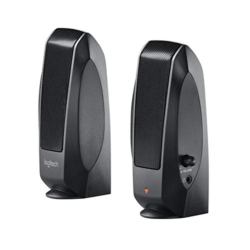 Diese Logitech-Computerlautsprecher S120 sind kompakt, robust und einfach zu bedienen. Diese Lautsprecher sind etwas mehr als zehn Zentimeter hoch und schwer genug, um nicht umzukippen oder von der Schreibtischkante zu rutschen; genau das Richtige, wenn man einen kleinen Schreibtisch hat.