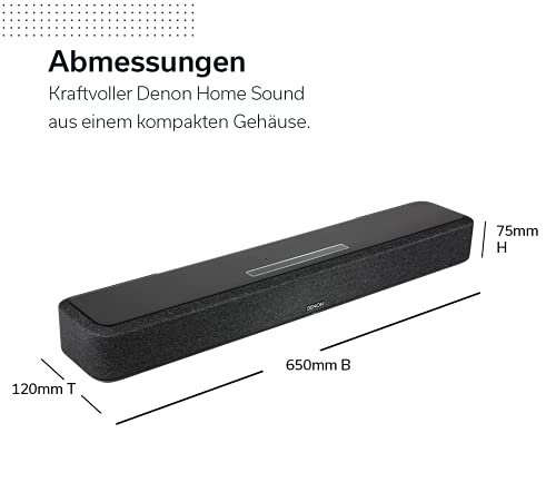 Wenn du eine Soundbar suchst, die dir auf Knopfdruck (oder per Sprachkommando) echtes Heimkino-Feeling bietet, ist die Denon Home Sound Bar 550 mit Dolby Atmos eine sehr gute Wahl. Sie kombiniert die wichtigsten Faktoren für Film- und Serienfans: ein raumgreifendes Klangbild und eine komfortable Bedienung. Das nüchterne, schwarze Design fügt sich dezent in unterschiedliche Wohnstile ein, und die 2 Jahre Garantie schaffen Vertrauen.