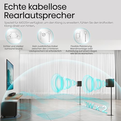 Du möchtest ohne großen Aufwand echten 3D-Surround-Sound. Die Hisense AX5125H kombiniert 5.1.2-Kanäle mit Dolby Atmos und kabellosem Subwoofer – ideal als sofortiges Heimkino-Upgrade.