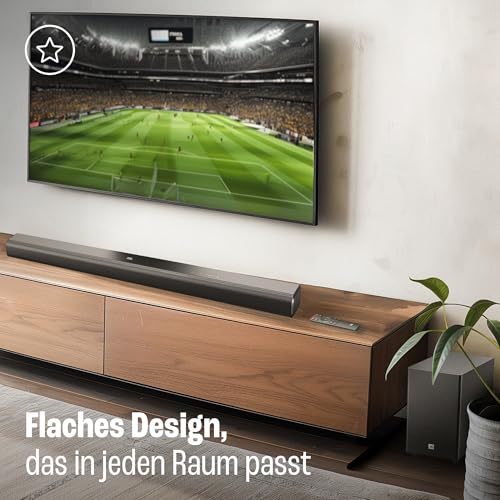 Wenn du eine unkomplizierte Lösung suchst, um deinen Fernsehton deutlich aufzuwerten, ist die JBL Cinema SB 550 Soundbar mit Subwoofer eine starke Wahl. Der integrierte Dolby Audio-Sound schafft packende Heimkino-Momente, während der Subwoofer für den nötigen Tiefbass sorgt – spürbar bei Actionfilmen, Serien und modernen Musikgenres. Durch das einfache Setup bist du ohne langes Einrichten startklar, und dank kabellosem Streaming spielst du Inhalte komfortabel von deinen bevorzugten Quellen ab.