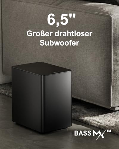 Antwort: Weil Dolby Atmos dir ein spürbar dreidimensionales Klangbild liefert und der kabellose Subwoofer die Platzierung erleichtert – beides wertet Filme und Musik deutlich auf.