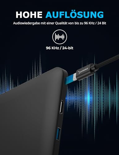 Suchst du eine schlanke, zuverlässige Möglichkeit, analoge Audiohardware an ein modernes USB‑C‑Gerät anzubinden – und willst Kopfhörer und Lautsprecher gleichzeitig verwenden –, passt der Sabrent USB‑C auf 3,5mm Klinke Adapter sehr gut zu deinem Einsatz. Er ist schnell angeschlossen, wirkt durch sein schwarzes Design unaufdringlich und eignet sich ideal als Alternative, wenn die interne Soundkarte Probleme macht. Die 2‑jährige Garantie nach Registrierung ist ein zusätzliches Plus.