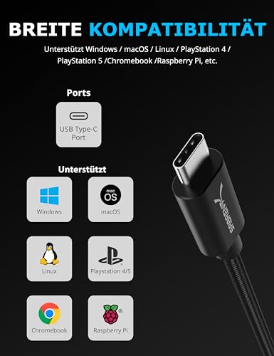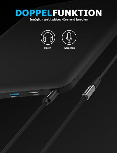 Die Einrichtung ist unkompliziert: USB‑C (Typ C) anstecken, 3,5‑mm‑Audiostecker verbinden – fertig. Diese Reduktion auf das Wesentliche passt zum unauffälligen, schwarzen Design. Positiv fällt zudem die ausgewiesene zweijährige Garantie nach Registrierung auf, die dir zusätzliche Sicherheit gibt.