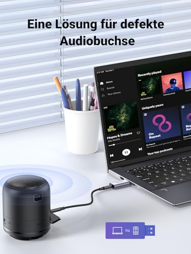 Die Produktbeschreibung betont eine hochwertige Klangqualität. Das spricht dafür, dass die Soundkarte für Alltagsanwendungen wie Videokonferenzen, Voice-Chat auf der PS4, Online-Unterricht oder Musikgenuss geeignet ist. Gerade für mobile Nutzerinnen und Nutzer, die schnell einen verlässlichen Audiozugang benötigen, bringt das 2-in-1-Design spürbaren Komfort.